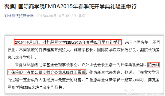 阳光保险副总王霄鹏曾念过EMBA 为何还是本科学历? 其实有原因!